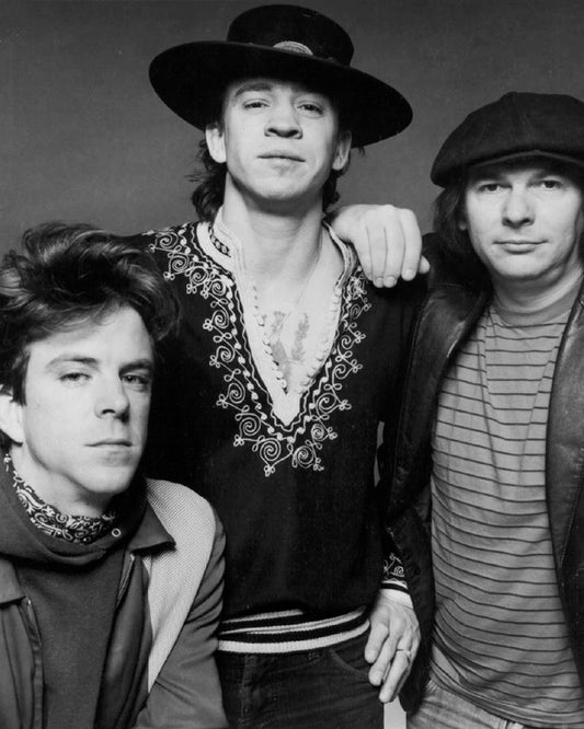 Stevie Ray Vaughn and Double Trouble-1983 Black Ornate Wood Framed Art Print with Double Matting by Vintage Music Archive