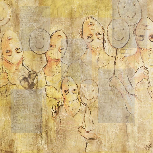 Happy Black Ornate Wood Framed Art Print with Double Matting by Wiley, Marta