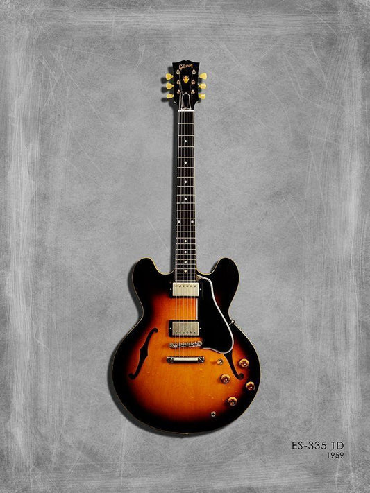Gibson ES335 59 White Modern Wood Framed Art Print with Double Matting by Rogan, Mark