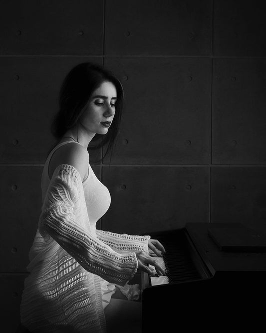 Iranian Female Instrumentalists (Piano) Black Ornate Wood Framed Art Print with Double Matting by Keramati, Saeed