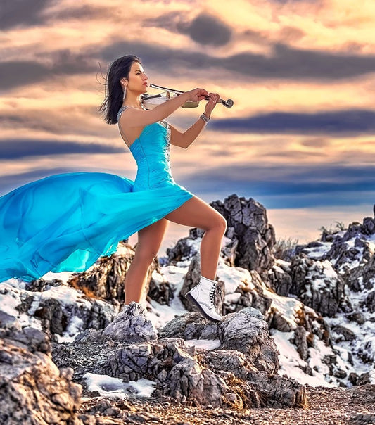 Tanya-The Queen Of The Violin Black Ornate Wood Framed Art Print with Double Matting by Nanev, Vasil