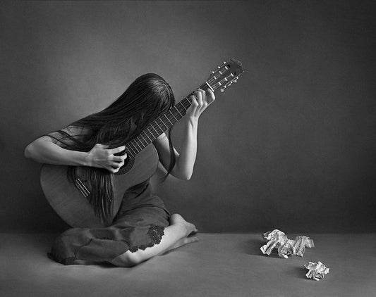 Musician. Black Ornate Wood Framed Art Print with Double Matting by Refat