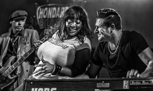 Jazz Black Ornate Wood Framed Art Print with Double Matting by Kiciak, Christophe