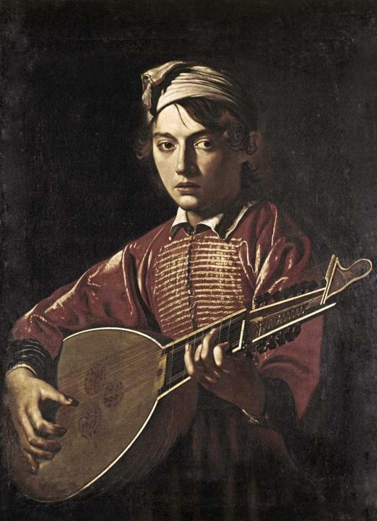 The Lute Player Black Ornate Wood Framed Art Print with Double Matting by Caravaggio