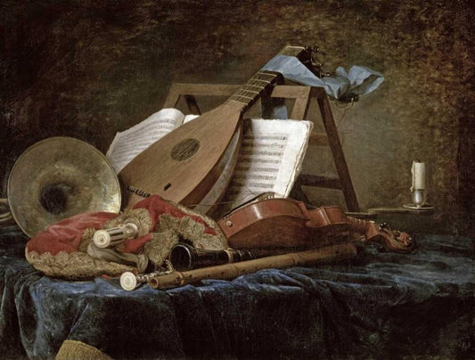 The Attributes of Music Black Ornate Wood Framed Art Print with Double Matting by Vallayer-Coster, Anne