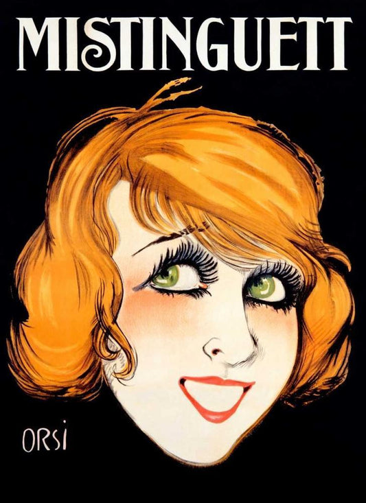 Mistinguett Black Ornate Wood Framed Art Print with Double Matting by Orsi