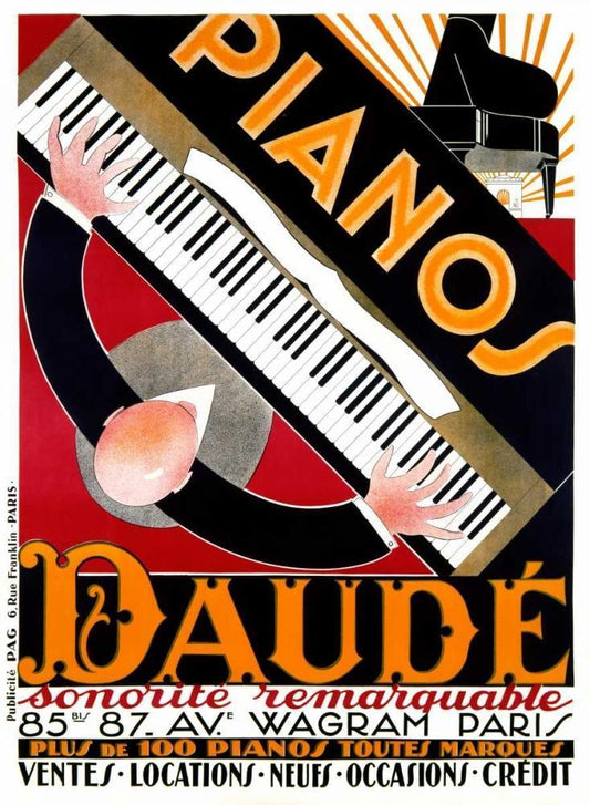 Pianos Daude Black Ornate Wood Framed Art Print with Double Matting by Daude, Andre