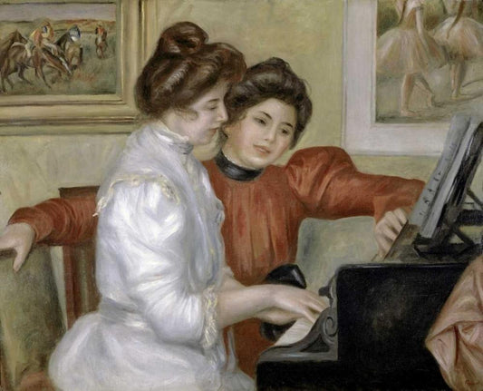 Yvonne and Christine Lerolle at the Piano, 1897-1898 Black Ornate Wood Framed Art Print with Double Matting by Renoir, Pierre-Auguste