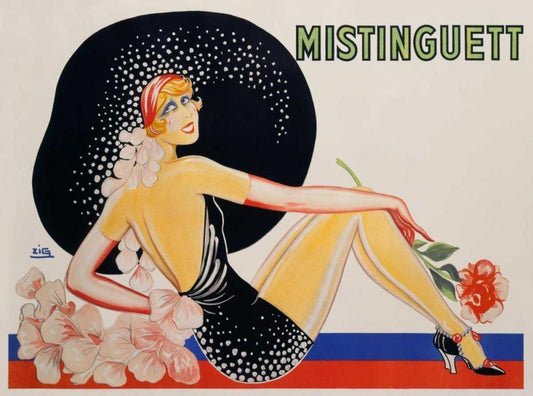 Mistinguett Black Ornate Wood Framed Art Print with Double Matting by Zig