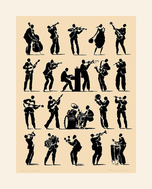 Jazz White Modern Wood Framed Art Print with Double Matting by Geraud, Philippe