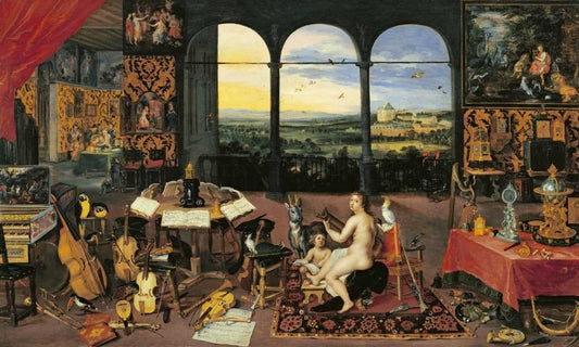 An Allegory of Hearing Black Ornate Wood Framed Art Print with Double Matting by Jan Brueghel the Elder