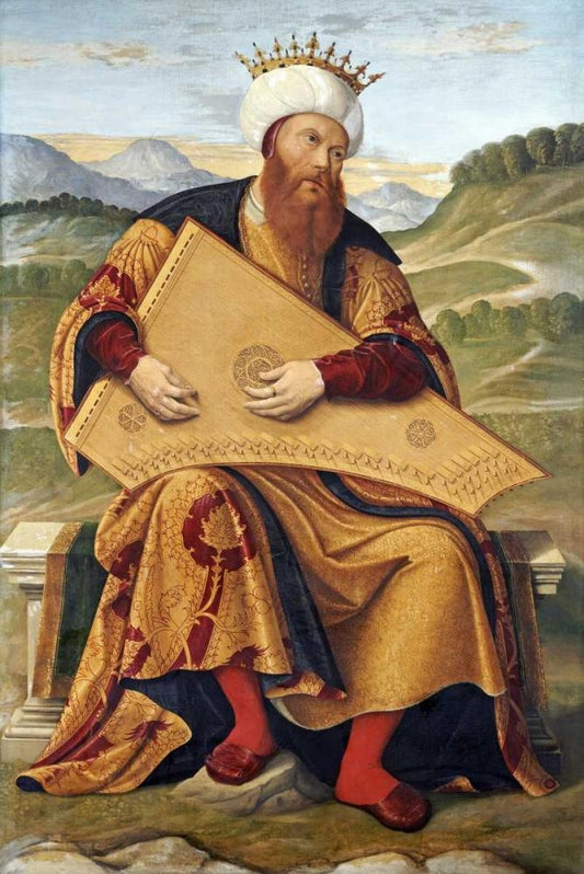 King David Playing a Psaltery Black Ornate Wood Framed Art Print with Double Matting by Da Santa Croce, Girolamo