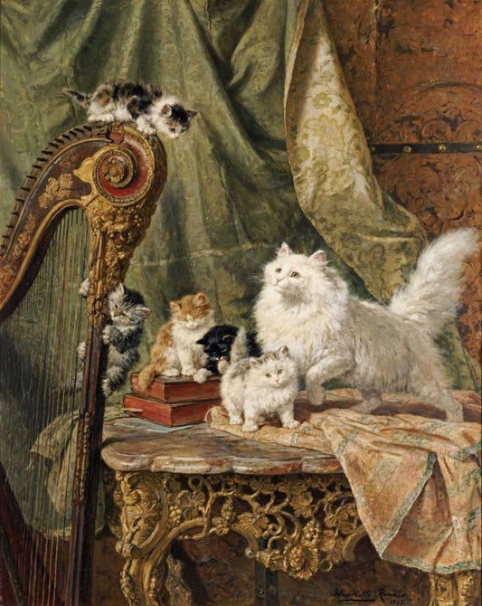 A Musical Interlude Black Ornate Wood Framed Art Print with Double Matting by Ronner-Knip, Henriette