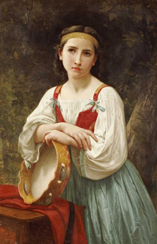 Basque Gipsy Girl With Tambourine Black Ornate Wood Framed Art Print with Double Matting by Bouguereau, William-Adolphe