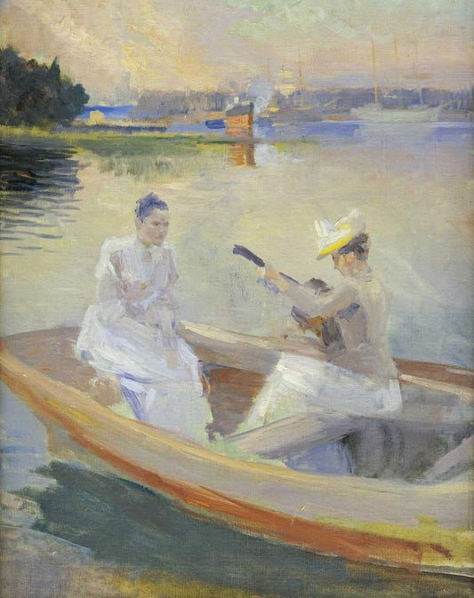 Summer Evening, Borga Harbour Black Ornate Wood Framed Art Print with Double Matting by Edelfelt, Albert