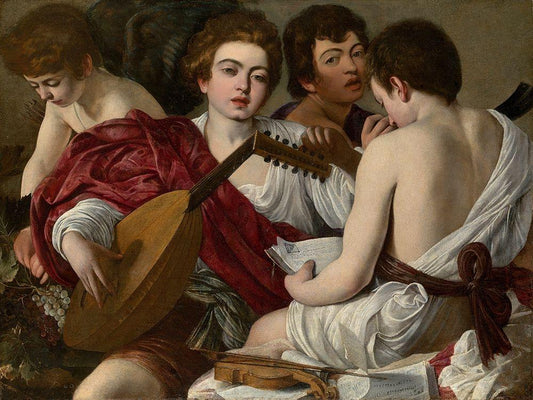Concerto (I musici) Black Ornate Wood Framed Art Print with Double Matting by Caravaggio