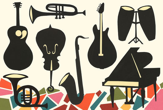 Cut Paper Instruments Collection A Black Ornate Wood Framed Art Print with Double Matting by Moore, Regina