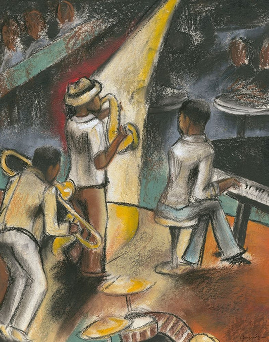Jazz Riff Black Ornate Wood Framed Art Print with Double Matting by Goldberger, Jennifer