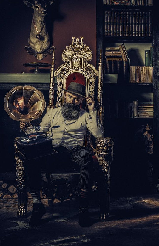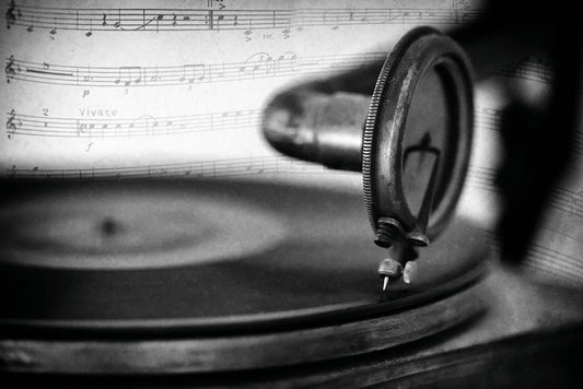 Girl With A Gramophone White Modern Wood Framed Art Print with Double Matting by Kapsha, Eduards