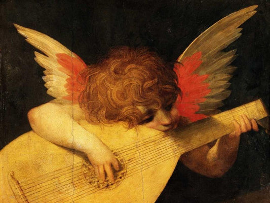 Angelo musicante (detail) White Modern Wood Framed Art Print with Double Matting by Rosso Fiorentino