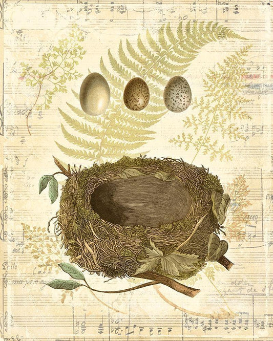 Melodic Nest and Eggs I White Modern Wood Framed Art Print with Double Matting by Vision Studio