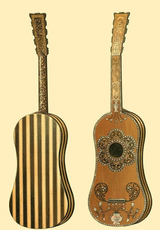 Antique Guitars I White Modern Wood Framed Art Print with Double Matting by Gibb, William