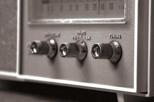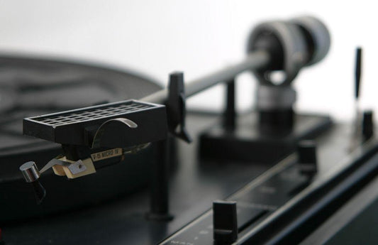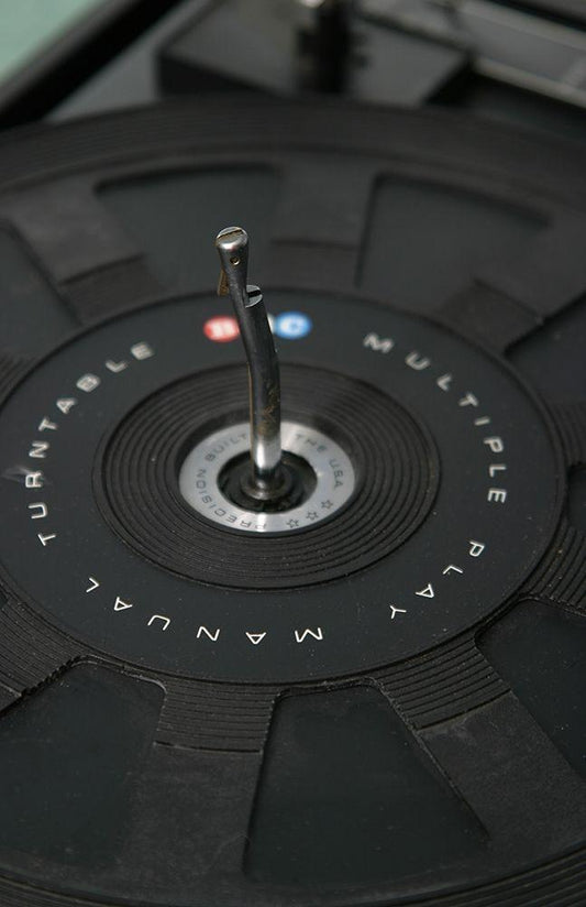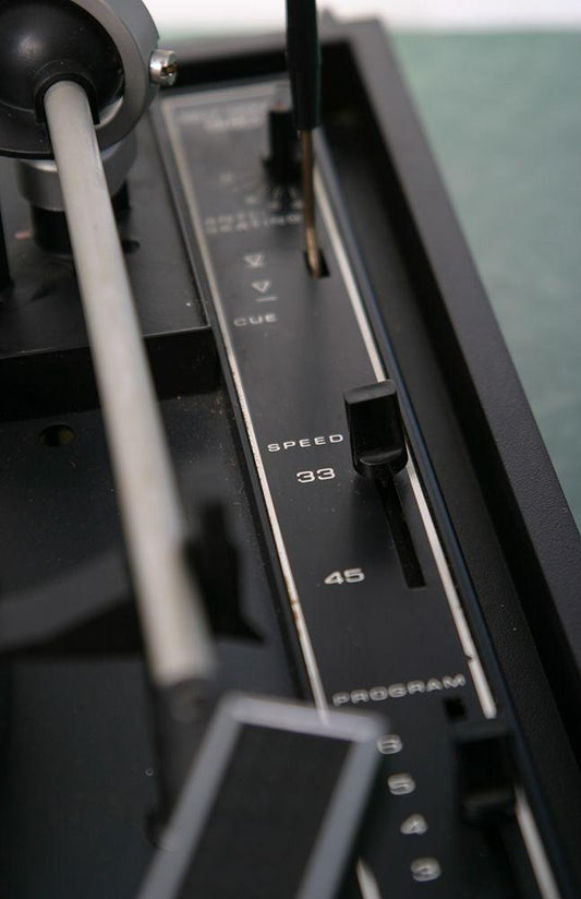 Turntable I White Modern Wood Framed Art Print with Double Matting by Stramel, Renee W.