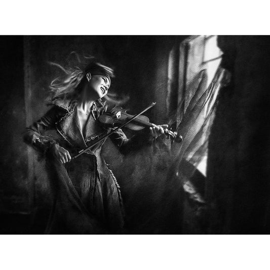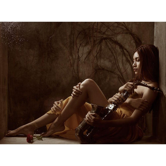 The Rhythm Of Sorrow Black Modern Wood Framed Art Print by Kisworo, Sebastian