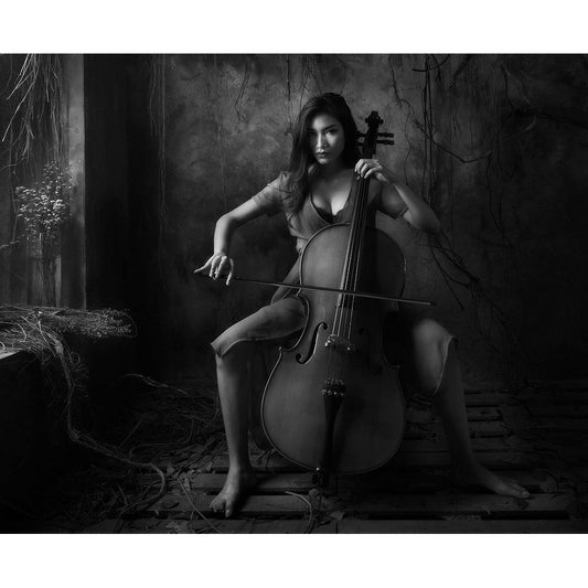 The Cellist Black Modern Wood Framed Art Print by Kisworo, Sebastian