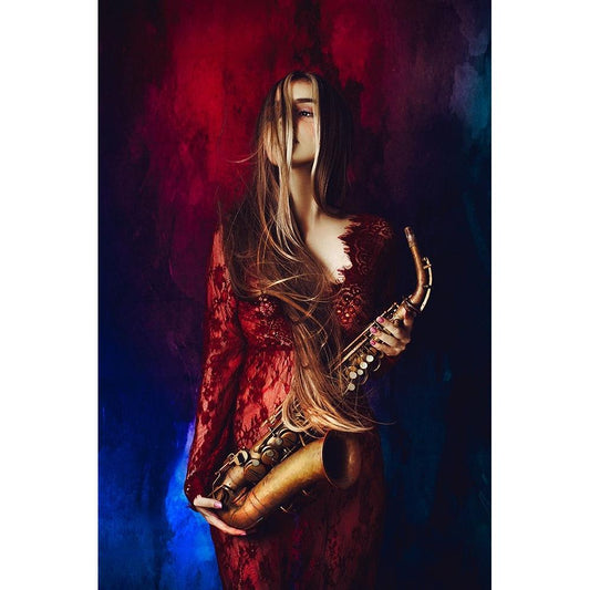 Music II Black Modern Wood Framed Art Print by Ajkabajka