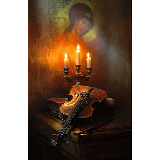 Still Life With Violin And Candle Black Modern Wood Framed Art Print by Morozov, Andrey