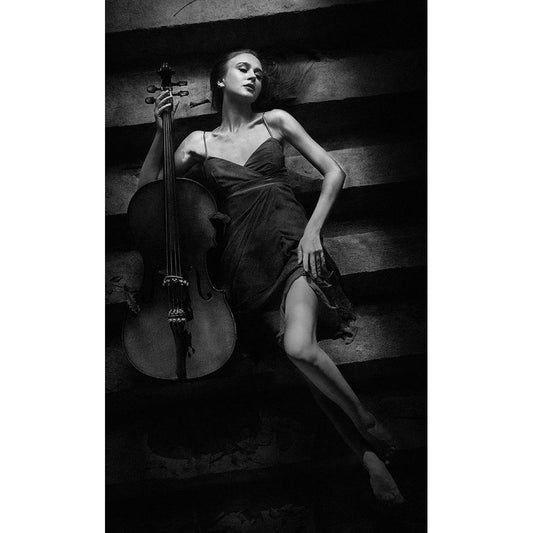 The Cellist Black Modern Wood Framed Art Print by Kisworo, Sebastian