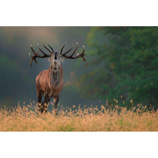 Deer Wedding Song Black Modern Wood Framed Art Print by Kravanja, Jure