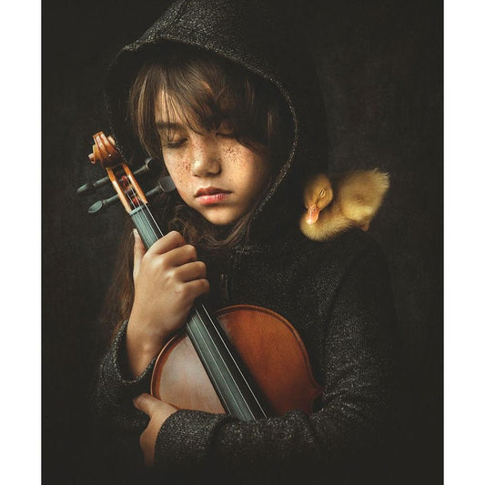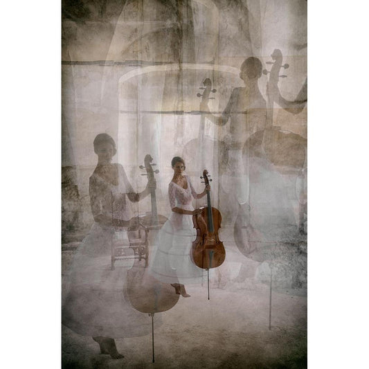 The Stage Fright Of The Cellist Black Modern Wood Framed Art Print by Schleicher-Schwarz, Roswitha