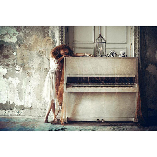 Girl With A Gramophone Black Modern Wood Framed Art Print by Kapsha, Eduards