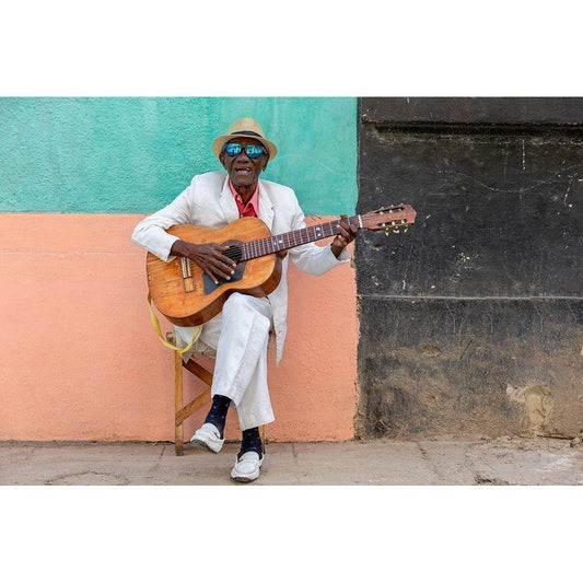 Cuban Guitarist Black Modern Wood Framed Art Print by Gil Raga, Joan