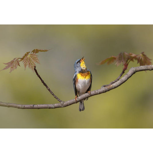 Parula On Stage Black Modern Wood Framed Art Print by Barsh, Greg