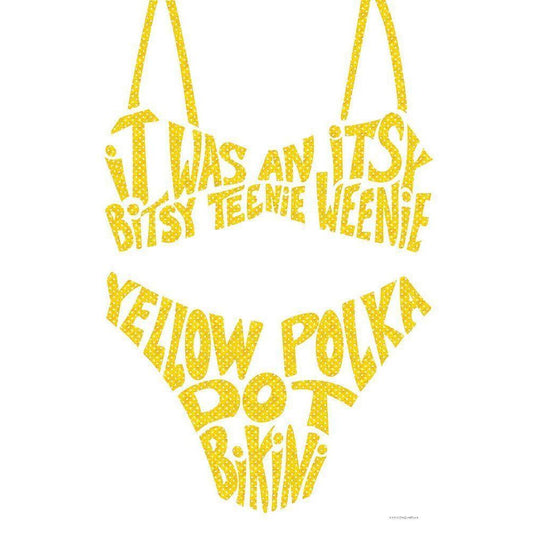 Yellow Polka Dot Bikini Black Modern Wood Framed Art Print by Kamdon Kreations