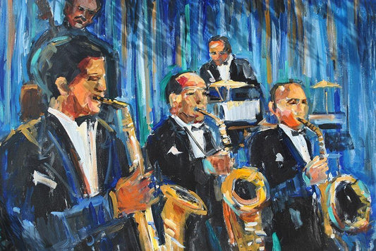 Horn Section White Modern Wood Framed Art Print with Double Matting by Stevens, Allayn