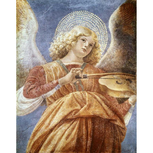 Music Making Angel with Violin Black Modern Wood Framed Art Print by Da Forli, Melozzo