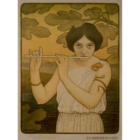 La Joyeuse de Flute Black Modern Wood Framed Art Print by Berthon, Paul