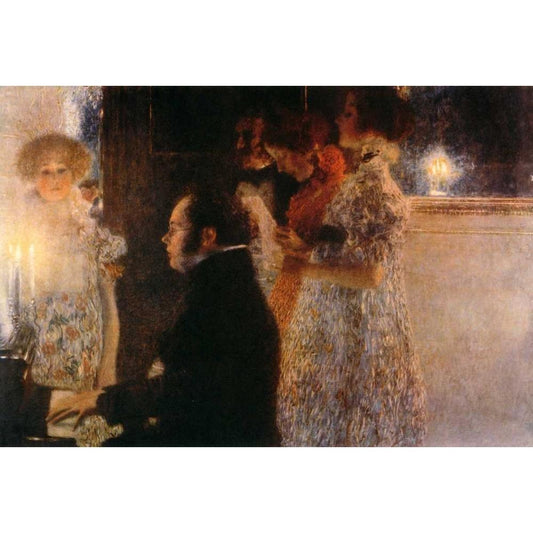 Schubert At The Piano 1899 Black Modern Wood Framed Art Print by Klimt, Gustav
