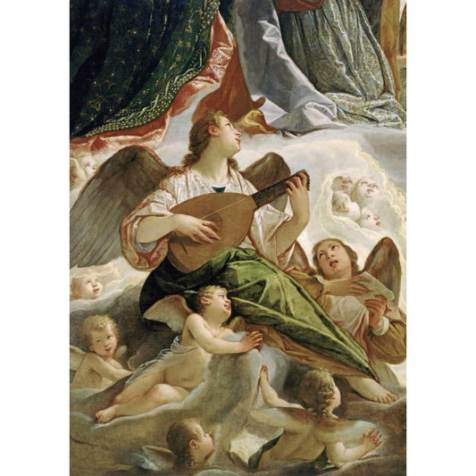 Music Making Angel with Lute Black Modern Wood Framed Art Print by Da Forli, Melozzo
