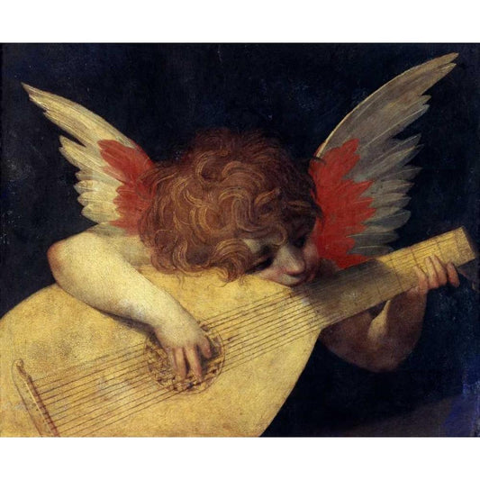 Angel with Lute Black Modern Wood Framed Art Print by Fiorentino, Rosso