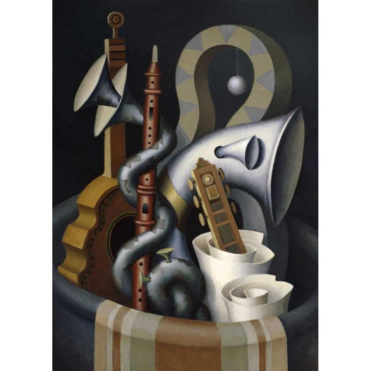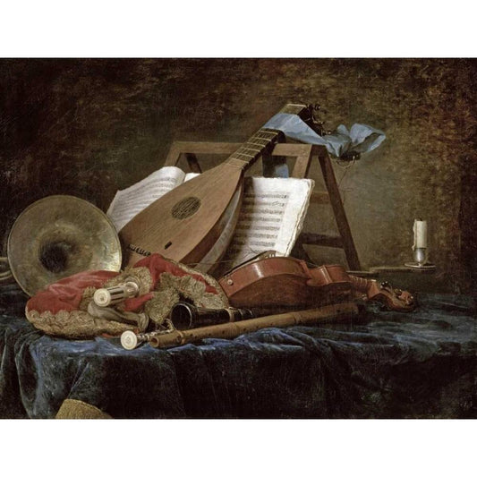The Attributes of Music Black Modern Wood Framed Art Print by Vallayer-Coster, Anne