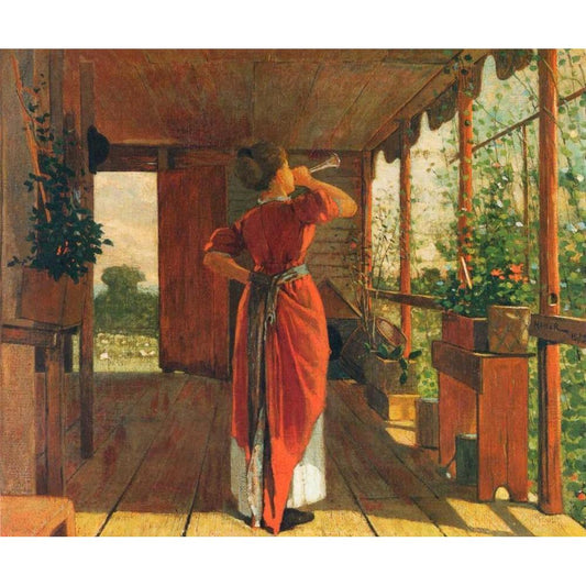 The Dinner Horn Black Modern Wood Framed Art Print by Homer, Winslow