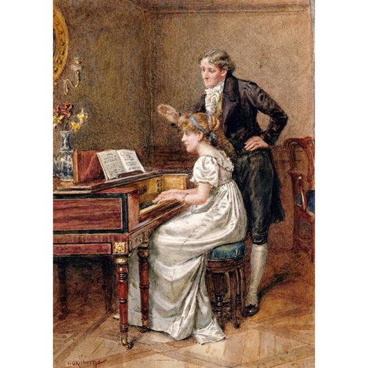 The Music Master Black Modern Wood Framed Art Print by Kilburne, George Goodwin