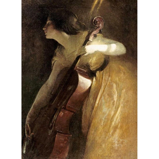 A Ray of Sunlight - The Cellist Black Modern Wood Framed Art Print by Alexander, John White