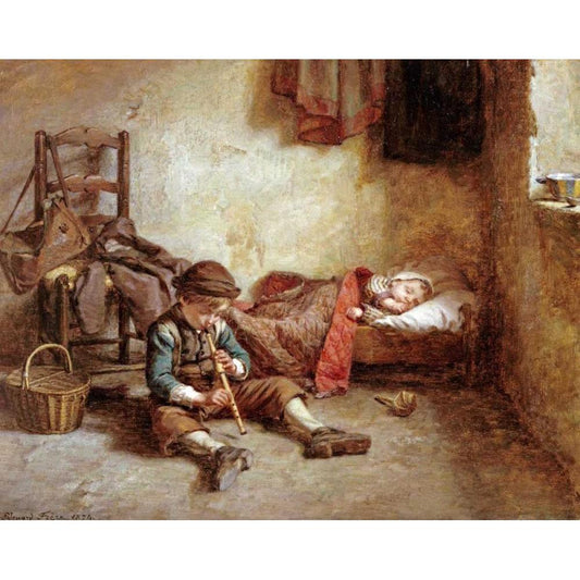 The Lullaby Black Modern Wood Framed Art Print by Frere, Pierre Edouard