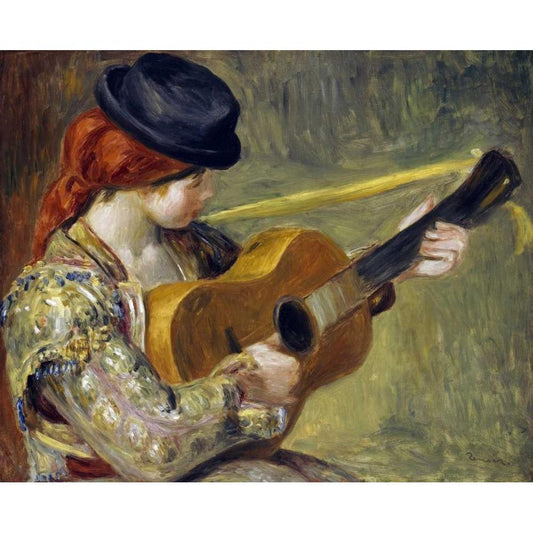 Girl with a Guitar, 1897 Black Modern Wood Framed Art Print by Renoir, Pierre-Auguste